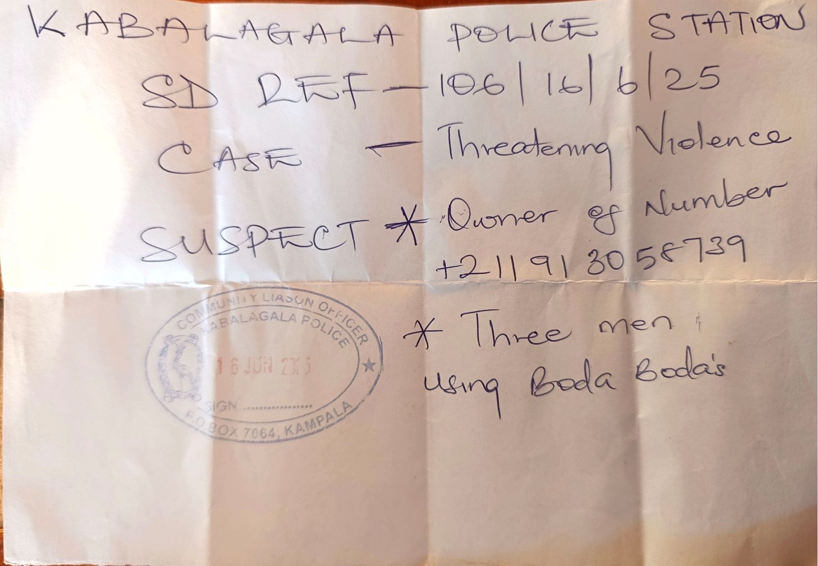 وقال (ع. ه)، أحد نشطاء المجتمع المدني السوداني في كمبالا إن ما جرى “ليس حادثاً عابراً، بل محاولة مقصودة لكسر موقف وإخماد شعلة مقاومة سلمية”، مضيفاً أن منفذي الاعتداء “فشلوا في تصفية زميلهم الناشط والمدافع الحقوقي، (م. ع)، الذي رفض أن يبتاع صمته، مؤكظا انه واجه تهديدات متكررة منذ مغادرته السودان، بعضها طالت أسرته ومحيطه، بسبب عمله السابق وحيازته معلومات سريه وحساسة ورفضه الانخراط في حملات التشويه”.