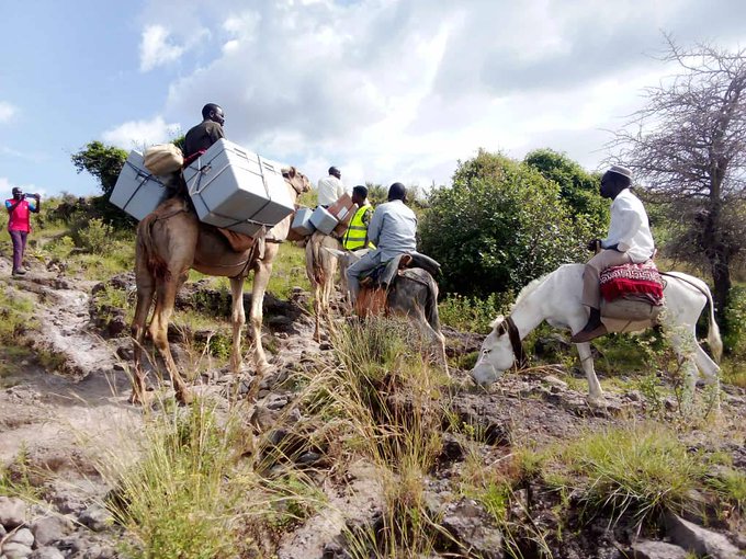 الصحة العالمية :المُطعِّمون المدرَّبون يستخدمون الجِمال والبغال للوصول إلى المناطق النائية والصعبة في طويلة شمال دارفور