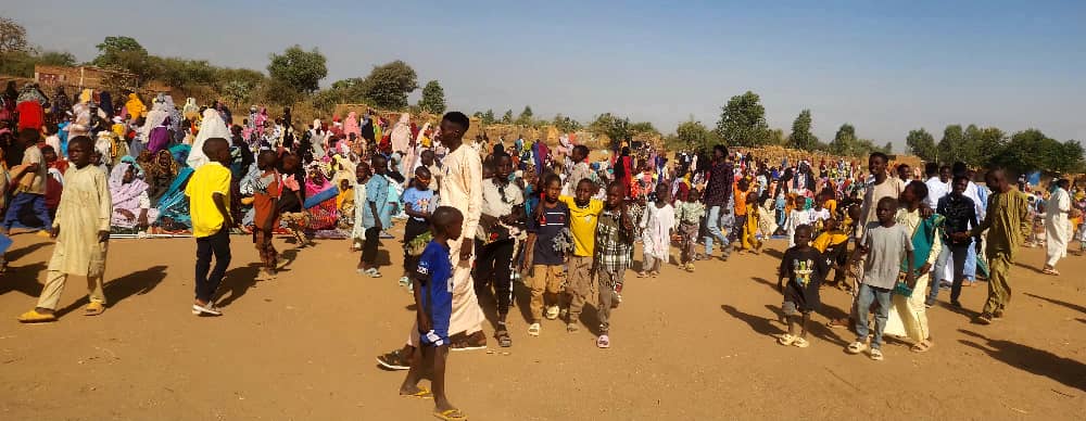 أدى جموع المصلين النازحين والفارين من الحرب الدائرة بين الجيش والدعم السريع بجبل مرة مدينة نيرتي، صلاة عيد الفطر المبارك