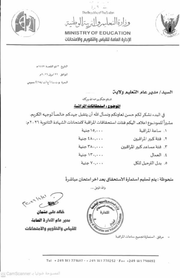 أعربت لجنة المعلمين السودانيين عن رفضها القاطع لهيكل استحقاقات العاملين في امتحانات الشهادة الثانوية للعام 2026، واصفة إياه بأنه يعكس ظلماً وتهميشاً واضحين للمعلم، ويجسد خللاً عميقاً في أولويات الدولة تجاه العملية التعليمية.
