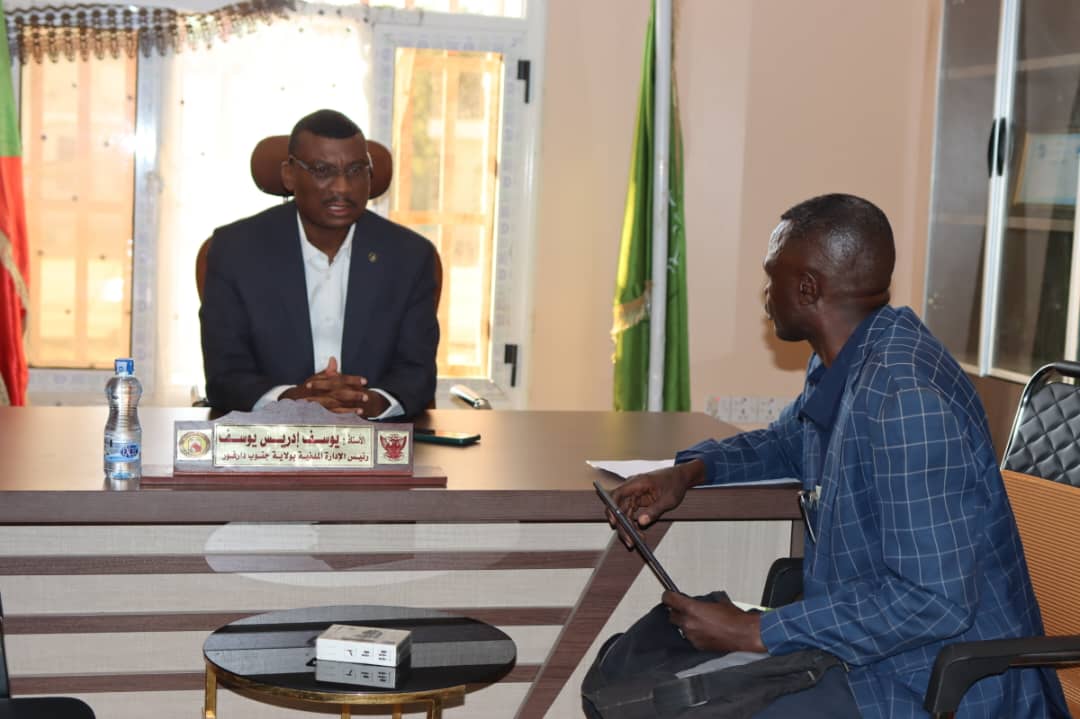 صحيفة (السودانية نيوز) جلست مع والي ولاية جنوب دارفور المكلّف يوسف إدريس يوسف في حوار خاص، تناول فيه أبرز القضايا الراهنة، بدءاً من حقيقة ما جرى لمدير المستشفى التركي، مروراً بحادثة اغتيال أحد أفراد الشرطة، وصولاً إلى جهود تأمين الموسم الزراعي، وتقييمه للوضع الأمني في الولاية، ثم علاقته بـ“حكومة تأسيس” ورؤيته لدورها في ضبط العلاقة الدستورية والإدارية، بالإضافة إلى رسائل مهمة وجّهها للحكومة والمواطنين.